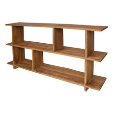 The Knoll Teak Bookcase is a striking balance of structure and organic form. Crafted from plantation teak wood, this open shelving unit features a rustic, unfinished surface that highlights the wood’s natural grain and warmth. One side is intentionally left with organic, irregular edges, celebrating the raw beauty of the material and ensuring that no two pieces are exactly alike. With its generous scale and open design, the Knoll Bookcase works beautifully as a room divider, statement storage piece, or sculptural focal point in living spaces, offices, or studios.