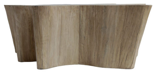 The Naka Coffee Table is carved from a slice of organically shaped plantation teak wood, celebrating the raw beauty and natural contours of the timber. The sides are wrapped in reclaimed teak skin, finished in a softly aged tone that highlights the wood’s authentic character. A protective clear water-based top coat preserves the surface while maintaining its natural appeal.