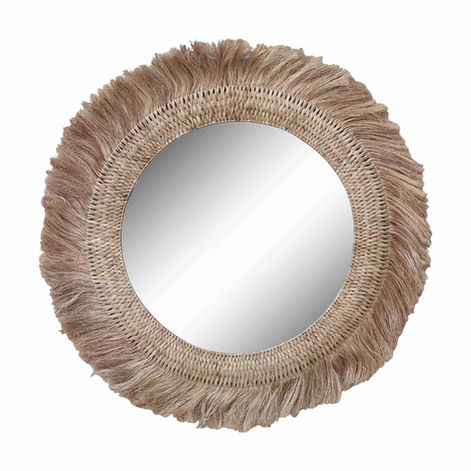 The Safi Mirror is handwoven entirely from natural abaca fibre, showcasing the beauty of traditional craftsmanship. Its circular frame combines a tightly woven inner border with a soft, textured fringe, creating depth and dimension while keeping a refined organic feel. Rich in natural texture and warm tones, this artisanal piece adds a touch of global elegance to any interior, making it an ideal accent for entryways, bedrooms, or living spaces.