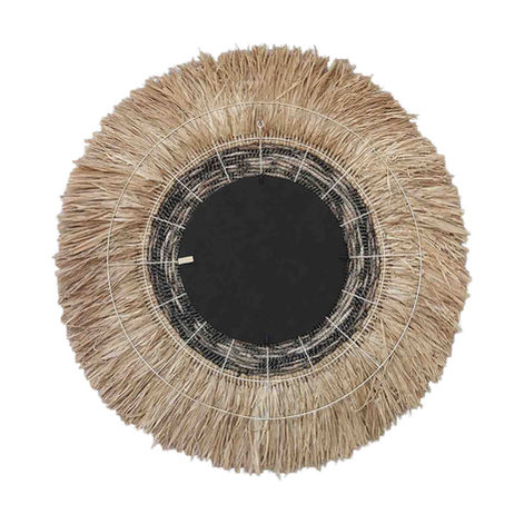 The Tula Mirror combines natural sisal and abaca in a beautifully handwoven design. Its round frame features layers of combed sisal radiating outward, softened by a textured inner border of twisted abaca for added depth and contrast. Organic yet refined, this artisanal piece brings warmth, movement, and global character to any room—whether styled in an entryway, above a console, or as a focal point in a living space.