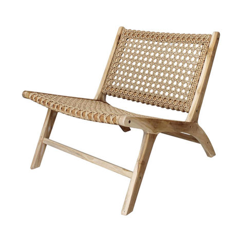 The Terra Outdoor Chair features a sculptural, low-profile silhouette that blends natural warmth with airy texture. Crafted from unfinished plantation teak, the frame highlights organic grain and clean geometry. A handwoven 5mm polyhyacinth weave in a Euro-Ash tone creates a KT-patterned seat and backrest, giving Terra its relaxed, coastal character. Lightweight, breathable, and artfully crafted, it’s ideal for covered patios, terraces, and casual outdoor lounging.