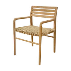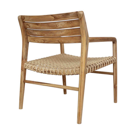 Designed as a versatile accent chair, it works well on patios, terraces, or covered outdoor seating areas. The combination of natural teak and woven texture creates a timeless look that pairs easily with a range of outdoor furniture styles.