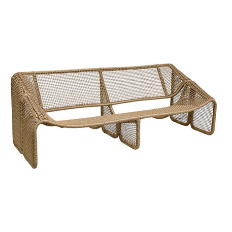 The Amalfi Outdoor Sofa is a sculptural take on coastal outdoor seating, defined by its fluid, contemporary silhouette. Crafted with a lightweight yet durable aluminum frame, the structure is wrapped in handwoven polyrattan that creates an airy, open-grid texture. Its curved form gently cradles the body while maintaining a modern, architectural presence.