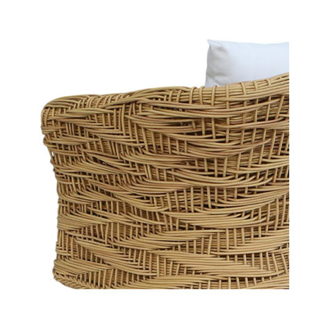 The Caluma Sofa celebrates sculptural weaving and modern resilience. Crafted over a powder-coated aluminum frame, its generous silhouette is wrapped in handwoven synthetic rattan that mirrors the warmth and rhythm of natural fiber. The layered patterning and soft curves evoke relaxed coastal living, while performance cushions ensure enduring comfort in outdoor settings. Both expressive and inviting, Caluma brings texture and ease to covered patios, garden lounges, or open terraces.
