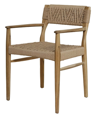 The Rhona Dining Chair blends the warmth of plantation teak with the artisanal texture of handwoven loom. Its streamlined frame, crafted from sustainably sourced teak, highlights the natural beauty of the wood’s grain, while the woven loom seat and backrest add comfort and airy sophistication.