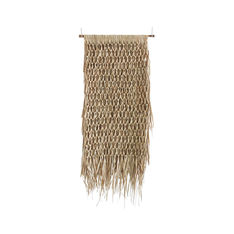 Handwoven from natural palm leaves, this wall décor features an open-weave lattice pattern that adds depth, texture, and a sense of movement to any space. Finished with free-flowing fringes, it has an organic character that feels both sculptural and relaxed.
