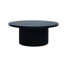 The Elle Dining Table is avaliable in two sizes: 47'' and 60''. Crafted from solid mindi wood and finished in a deep black stain, giving its round form a bold, sculptural presence. Vertical carved lines ripple across the base, adding texture and movement that play against the smooth circular top. Elegant and refined, it grounds any space with timeless simplicity and modern edge.