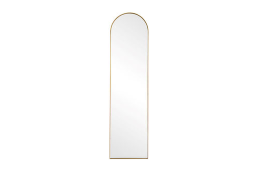 The Arlene Mirror offers a sleek, elongated design with a rounded arch top that brings modern elegance to any space. Crafted with a slim iron frame in a subtle gold finish, it’s designed to hang vertically, emphasizing height and creating a sense of openness. At 75 inches tall and 19 inches wide, it’s perfectly scaled as a full-length mirror for bedrooms, dressing areas, or entryways.