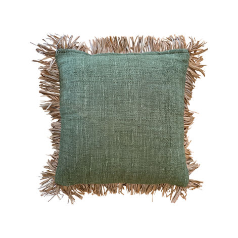 Finished with a hand-applied natural fringe, the pillow gains subtle movement and depth, balancing its artisanal character with a relaxed, refined finish. Thoughtfully constructed with a hidden zipper and polyester insert, the Leaf Print Pillow is designed for both beauty and everyday ease.