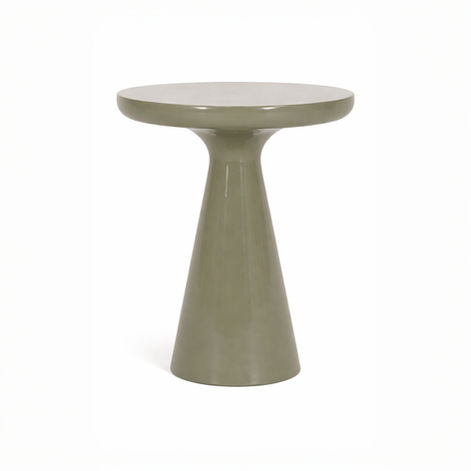 The Beacon Low Side Table is a sculptural accent piece defined by its flared pedestal base and smooth, rounded tabletop. Finished in a high-gloss sage green enamel, the table adds depth and dimension while maintaining a calm, organic presence. Its low profile makes it ideal beside lounge seating, poolside arrangements, or layered outdoor settings.