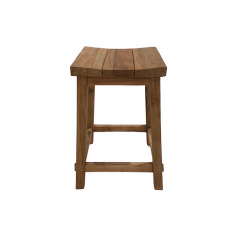 Our Alex Counter Stool is crafted from reclaimed teakwood, the stool's frame exudes a sense of natural elegance with its rich and weathered appearance, reflecting the charm of reclaimed materials.