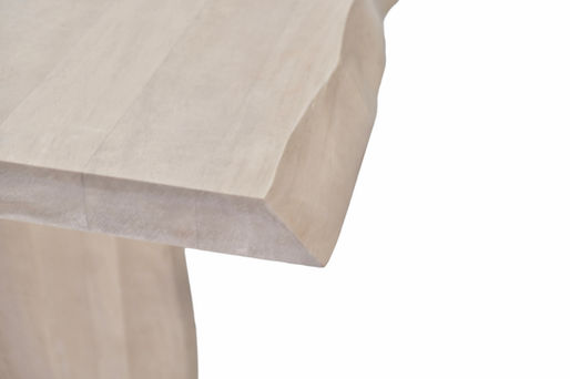 The table is supported by two substantial slab legs, offering a grounded architectural presence while maintaining an airy, modern profile. Finished in a soft pale natural tone, Lily brings warmth and quiet sophistication to dining spaces, pairing effortlessly with both upholstered and wood seating.