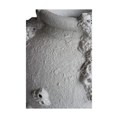 The Barnaca Medium Vase is hand-thrown from terracotta and finished with a rough white coating that emphasizes its organic form and surface detail. Each piece is individually shaped and hand-carved, creating raised, barnacle-inspired textures that vary subtly from vase to vase. Because it is handmade, no two pieces are exactly alike, with variations in carving, texture, and color forming part of the design. As a decorative object, this size offers a balanced visual presence and works beautifully on consoles, sideboards, or larger tabletops without overwhelming the surrounding space.