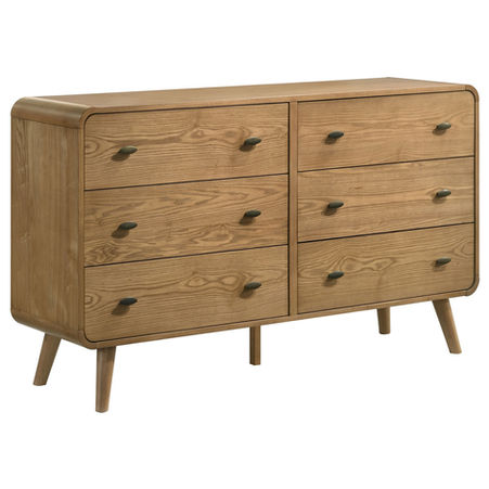 Six generously sized drawers offer ample storage, seamlessly integrated into the form to maintain a streamlined profile. Finished with understated hardware and supported by gently tapered legs, the Charles Dresser works effortlessly in sophisticated bedrooms, pairing well with both contemporary and mid-century–inspired interiors.