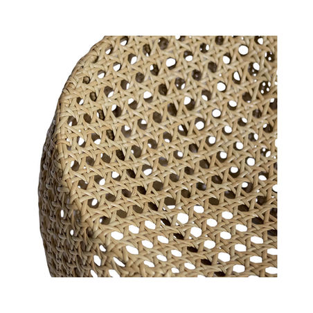 The Jeslin Outdoor Stool features a lightweight aluminum frame finished in a soft cream powder coat and wrapped in durable polyrope webbing in a warm honey tone. Its rounded form and woven texture add visual interest while maintaining a clean, contemporary profile.