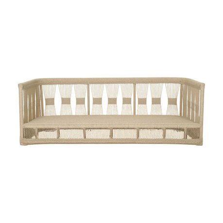 The Lido Sofa embodies sculptural lightness through its open, handwoven frame and refined silhouette. Crafted from durable powder-coated aluminum and wrapped in weather-resistant synthetic rope, it captures the natural elegance of artisanal weaving while ensuring long-term resilience outdoors. Deep cushions in performance fabric add softness and support, creating a modern yet organic piece suited for both fully exposed and covered outdoor settings.
