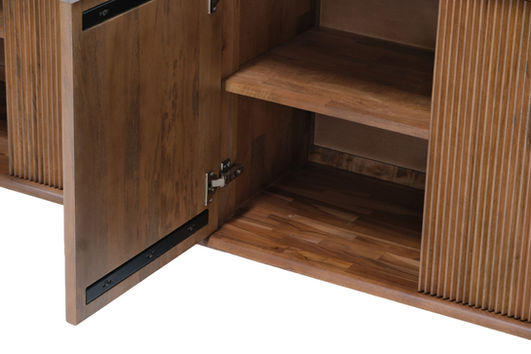 Crafted from solid mango wood in a rich medium brown finish, the Milo Sideboard offers a warm, grounded take on modern storage. Vertical fluted door detailing adds depth and texture, while slim black iron legs create a clean contrast that keeps the design feeling light and contemporary.