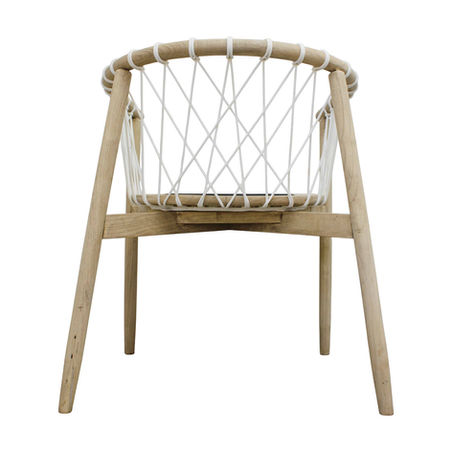 The white seat cushion cover is removable and made from durable 100 % polypropelen and provides comfortable seating, while the sturdy construction ensures lasting durability. This piece seamlessly blends natural materials with contemporary style, creating a sophisticated focal point in any space.