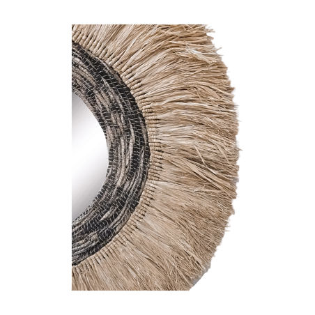 The Tula Mirror combines natural sisal and abaca in a beautifully handwoven design. Its round frame features layers of combed sisal radiating outward, softened by a textured inner border of twisted abaca for added depth and contrast. Organic yet refined, this artisanal piece brings warmth, movement, and global character to any room—whether styled in an entryway, above a console, or as a focal point in a living space.